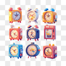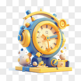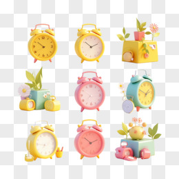 一组立体膨胀风教育教学学生相关免抠图标合集之闹钟元素
