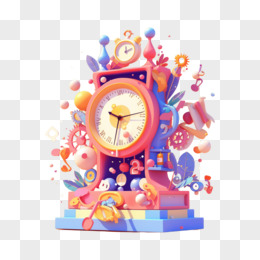 3D卡通手绘电子时钟免抠元素