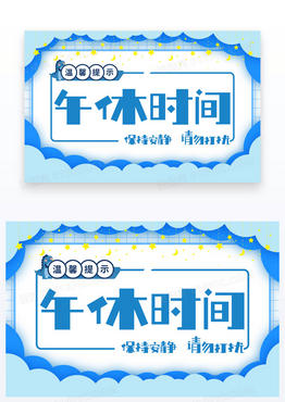 蓝色边框午休时间温馨提示卡设计