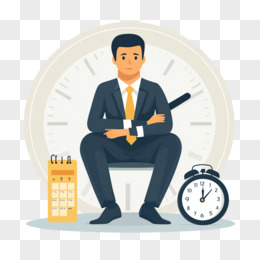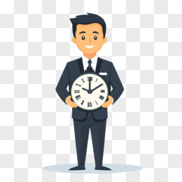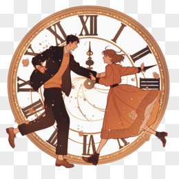 卡通一对年轻情侣在钟表前跳舞免抠元素