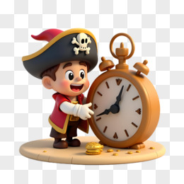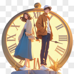 3D卡通一对年轻情侣站在钟表前免抠元素