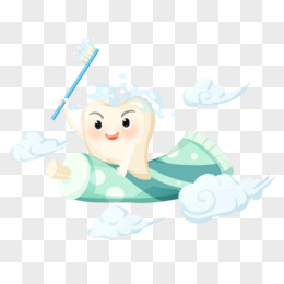 手绘插画创意拟人牙齿骑牙膏免抠素材