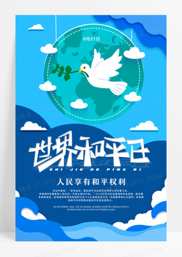 蓝色世界和平日主题海报国际和平日海报设计
