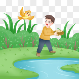 手绘插画破坏生态偷鸟蛋的男生免抠素材