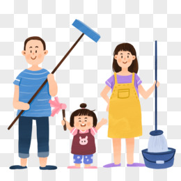 手绘卡通学生在打扫课桌和扫地插画免抠元素