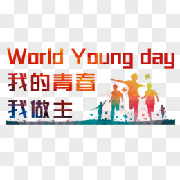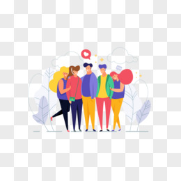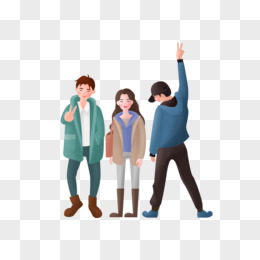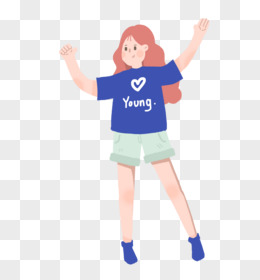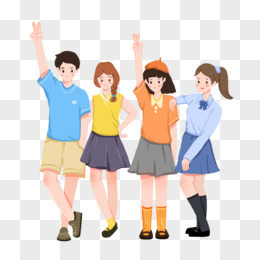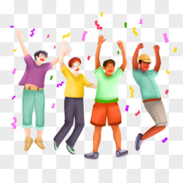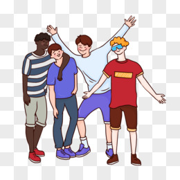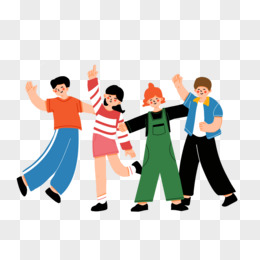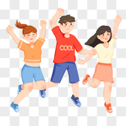 手绘卡通四个积极跳跃的年轻人免抠素材