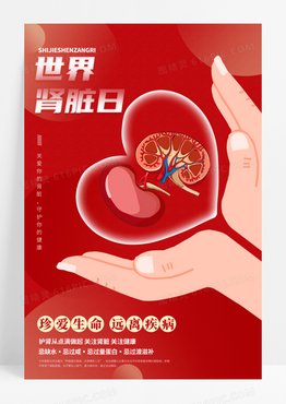 红色简约世界肾脏日宣传海报