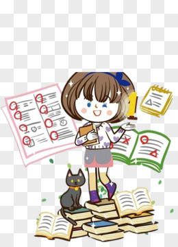 手绘高中女孩备战高空奋笔疾书免抠元素