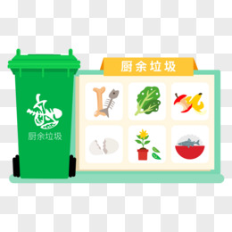 卡通手绘绿色标识厨余垃圾分类垃圾桶元素
