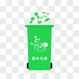 手绘绿色厨余垃圾垃圾垃圾桶免抠元素