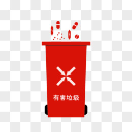 红色可爱卡通有害垃圾桶元素