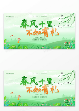 绿色简约春季促销春风十里不如有礼宣传展板春天