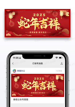 大气红色时尚蛇年大吉春节除夕国潮矢量中国风首图
