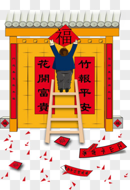 矢量贴对联的老人