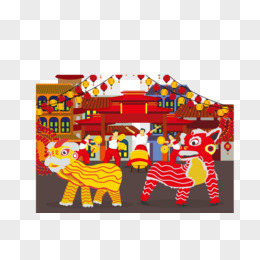 矢量新年舞狮子的人物免抠元素