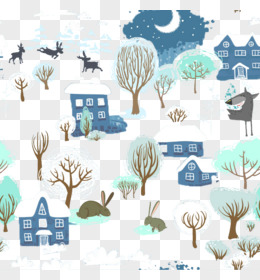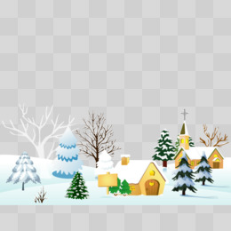 矢量冬天下雪雪花农村小村庄场景免抠卡通元素