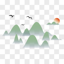 矢量中式古典山水折扇合成素材