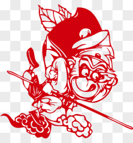 一组简约风矢量十二生肖剪纸合集之猴免抠素材