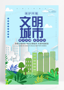 清新城市矢量图环保树创建文明城市文明建设海报宣传世界世界艾滋病日