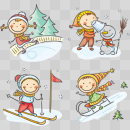 卡通手绘矢量滑雪实验素材