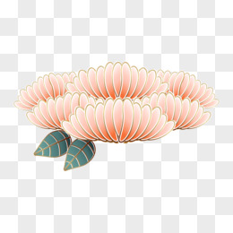 国潮金边粉色花免抠装饰矢量元素
