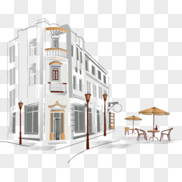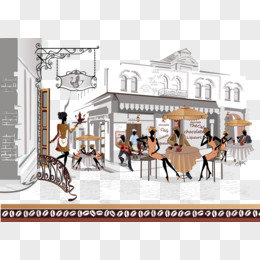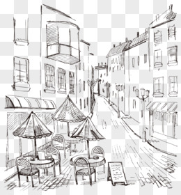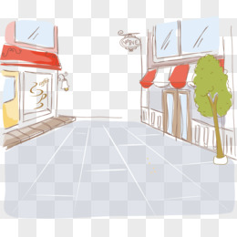 手绘餐厅街道矢量