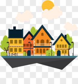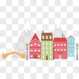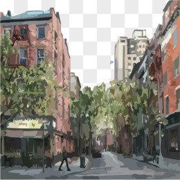 手绘街道与房屋