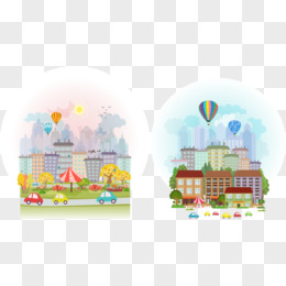 矢量热气球城市