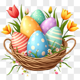 3D复活节放在篮子中的彩蛋免抠元素