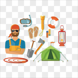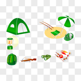 一组矢量卡通踏青野餐物品贴纸套图素材