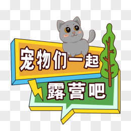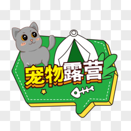 一组卡通矢量宠物露营手举牌系列图之猫露营元素