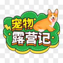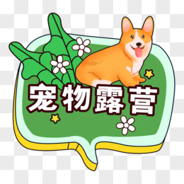 一组卡通矢量宠物露营手举牌系列图之宠物狗露营元素