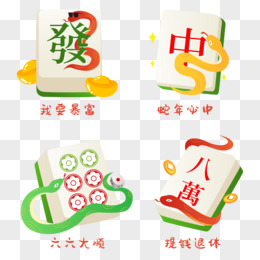 一组矢量蛇年麻将表情包合集元素