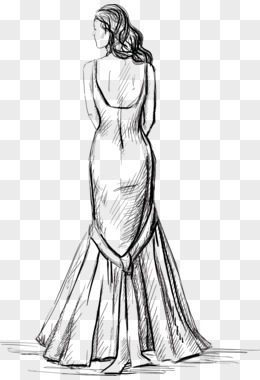 手绘优雅美女背影