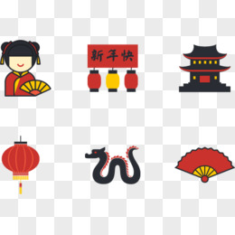 灯笼鞭炮金元宝铜钱等设计矢量素材,