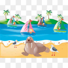 矢量膨胀风立体椰子沙滩创意免抠元素
