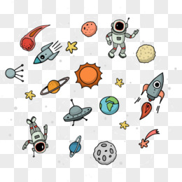 一组矢量扁平风飞船贴纸合集装饰系列四元素