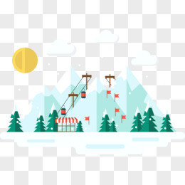 滑雪板与雪山风景矢量素材