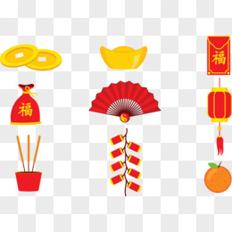 灯笼鞭炮金元宝铜钱等设计矢量素材,