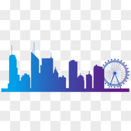 手绘矢量蓝紫渐变青岛城市剪影元素