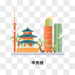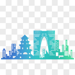 手绘渐变色河北石家庄地标建筑设计素材