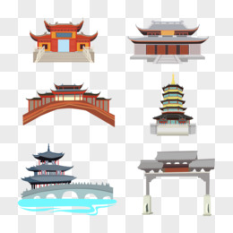 手绘矢量国潮寺庙素材