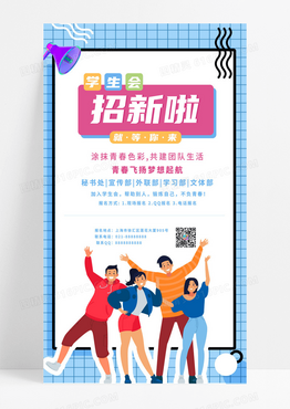蓝色矢量元素简约几何时尚学生会招新宣传手机文案海报