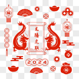 一组矢量膨胀风3D立体春节通用元素套图合集元素三