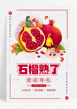 卡通石榴熟了美味水果上市促销海报