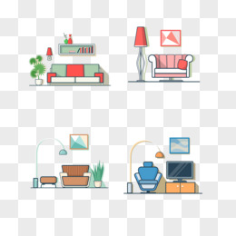 蓝色渐变插画风家具家居茶几桌子免抠元素