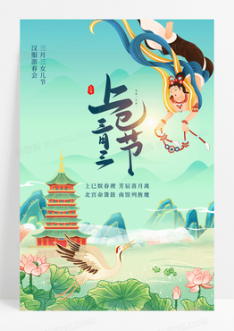 国潮上巳节女儿节汉服中国风鎏金宣传海报