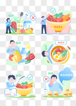 一组手绘插画风监督宣传食品安全套图合集 素材