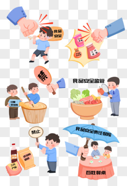 一组卡通手绘免抠食品安全合集之监管食品安全素材