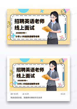 黄色线条简约招聘英语教师线上面试视频封面配图
